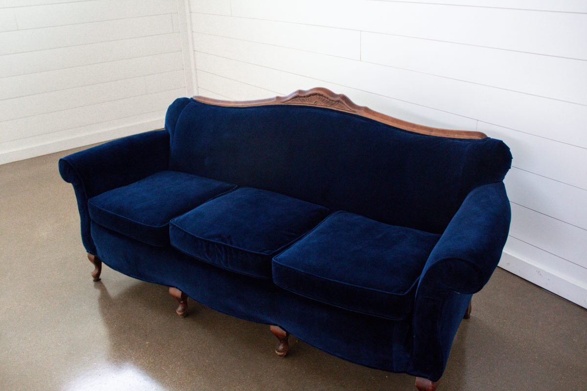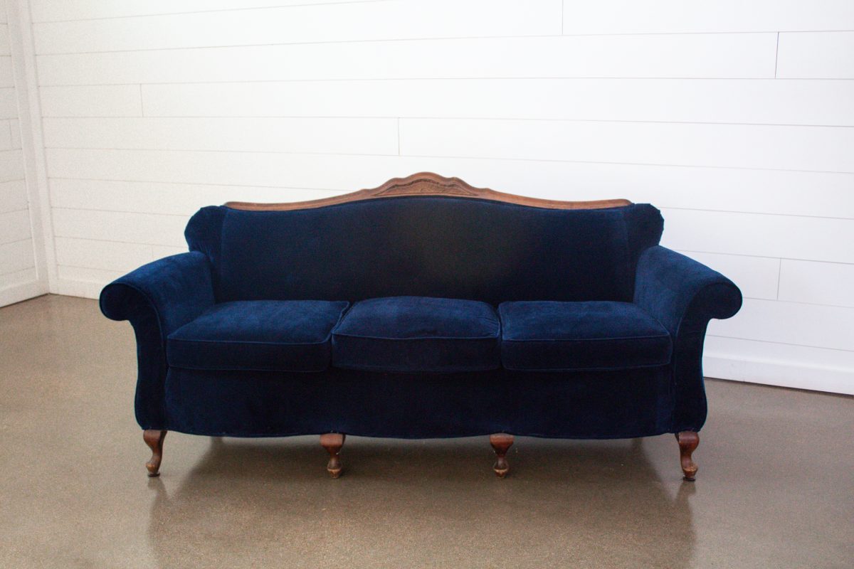 Gorgeous vintage sofa in a rich navy velvet